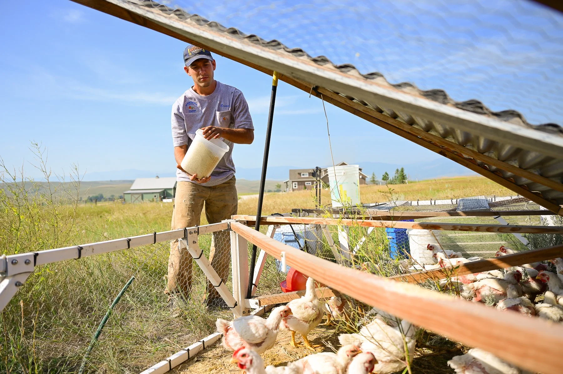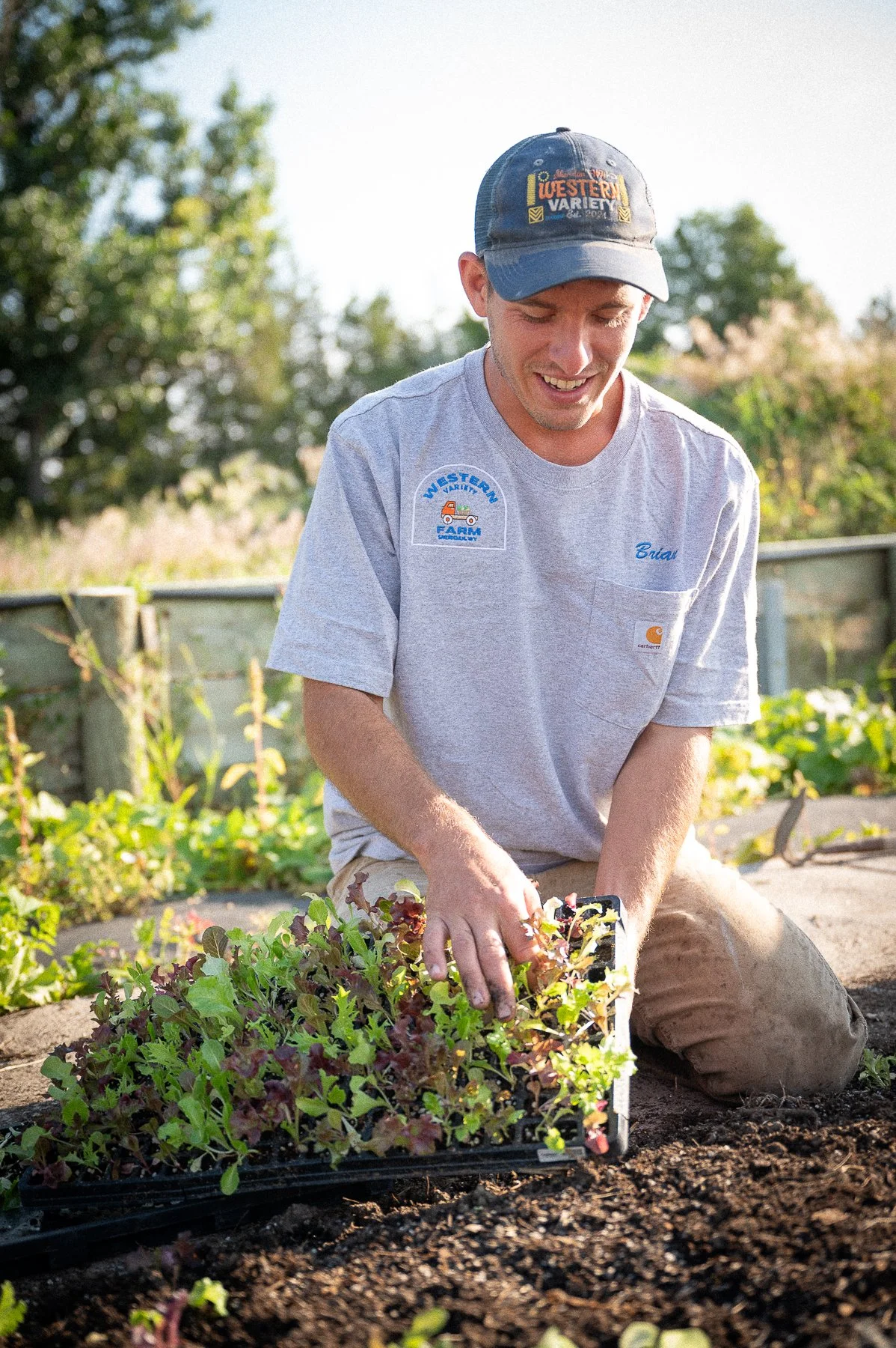 There was already sweat building underneath the brim of Brian Berglund’s worn baseball cap at 8 A.M. Wyoming’s dry August heat shimmered off of Western Variety Farm’s fields and buildings. Brian was crouched over a row of lettuce, covering the crop with a shade net, which is a clever way of adapting cooler weather plants to the increasing western temperatures. More produce grew inside the adjacent greenhouse, and flowers bloomed along the path leading up to both. Two local highschool students slid out of their mother’s car, arriving to help Brian cut and package the flowers for sale.